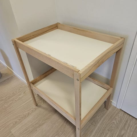 Yhden vauvan palvellut Sebra Pusle Pur hoitoalusta. Alustalla ollut aina pyyhe päällä käytettäessä. Kuvan IKEA hoitopöytä mahdollista saada mukaan yhteishintaan 70€.