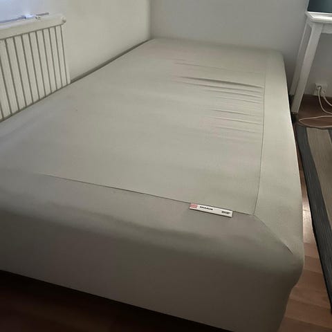 ANNETAAN runkopatjasänky 2 x 90cm leveä. Laadukas sänky, meillä aikansa palvellut. Tahroja toisessa. Runkopatja on verhoiltu ruskealla kankaalla ja siinä on puiset sälepohjat. Sängyssä on puiset jalat, jotka kiinnittyvät rungon nurkkiin. Jalat irrotettavissa/vaihdettavissa. Yksi jaloista irronnut liimauksesta, vaatii pientä etsausta. Sopii yhden hengen sängyksi tai kahden samanlaisen vierekkäin asetettuna parivuoteeksi. Annetaan ilman kuvissa näkyvää sängynpäätyä. Eläintalous.