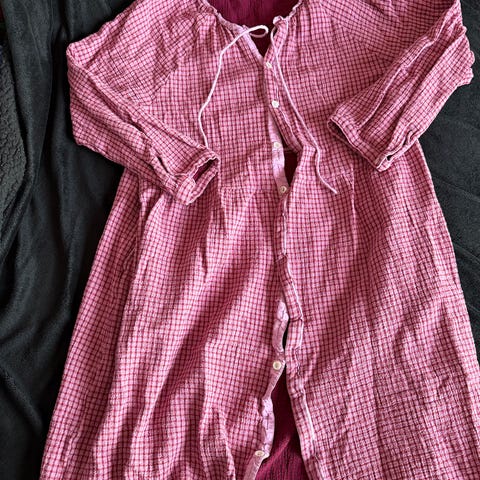 Gudrun Sjöden tunika (80% puuvilla ja 20% polyesteri) koossa XL. Käytetty, siisti ja ehjä - joskin niskassa tuotemerkki on irronnut toisesta reunasta, ei näy ulospäin. Koko XL, kainalo - kainalo noin 57 cm ja pituus olalta helmaan noin 90 cm (kaareva helma, keskikohdasta vähän pidempi).