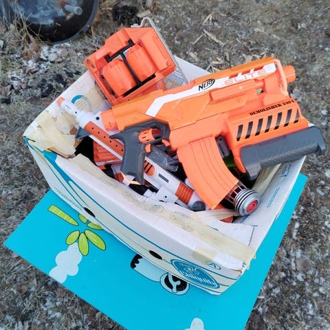 Kuvanmukainen leluase irrotettavilla osilla nerf. Ammuksia ei ole toimii. Ehjä käytetty. Nouto villähde (lähetyskulut lisätään jos haluaa postitse)