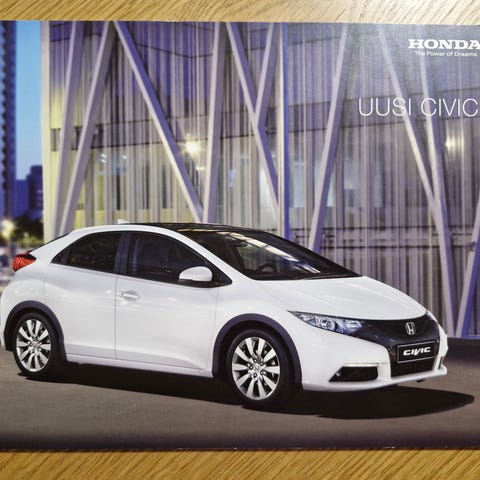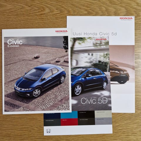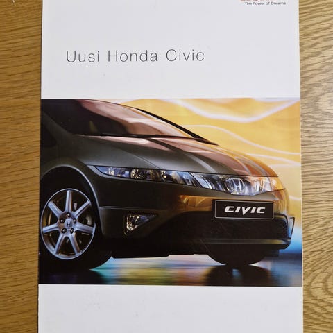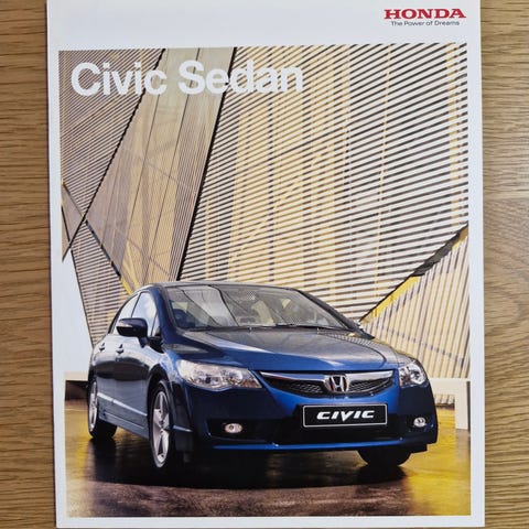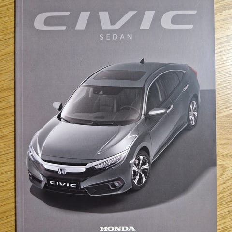 Honda Civic sedan -esite. Sisältää erillisen 14-sivuisen lisävarusteet-lehtisen ja 4-sivuisen värit ja tekniset tiedot -lehtisen.