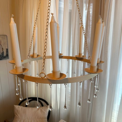 Kattokynttelikkö, metallinen, korkeus 54cm.