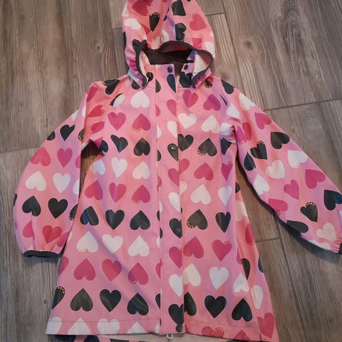 Myydään Jonathan sadetakki, raidallinen, koko 110. Väreinä pinkki, keltainen, valkoinen. Irroitettava huppu ja vetoketjukiinnitys. Hihoissa ja helmassa resorit. Takki hyvässä kunnossa, parissa kohdassa likaa (kts. kuvat). Juuri pesty.