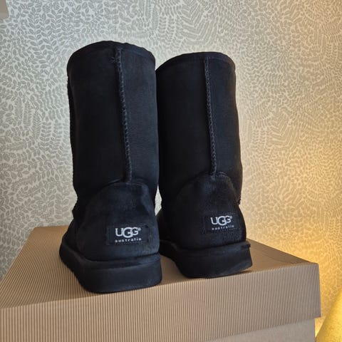 UGG talvikengät, koko 43. Varren pituus nilkkamittainen. Väri keskiruskea. Päällinen mokkanahkaa ja tekstiiliä, sisäpuolella pehmeä vuori. Nauhakiinnitys ja kumipohja, jossa kuvioitu pinta. Soveltuvat kylmään säähän. Lähetys mahdollinen Postin pakettiautomaattiin.