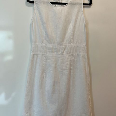 Värikäs kukkamekko, pellava-/puuvillamateriaali, solmittavat nauhat rintojen alapuolella. Koko 38. 10€, haku Kampista tai postitus