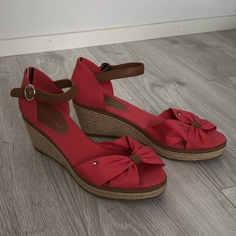 Aidot TOMMY HILFIGER tyylikkäät tummansiniset korkokengät koko 40. Aitoa nahkaa sekä päällys että sisäpuoli. Todella mukava lesti ja 5cm leveä tukeva korko. Kenkien etuosassa kullanvärinen metallinen TH-logo. UUDET. Sopivat arkikäyttöön, mutta ovat varsin näyttävät juhlissa. Hienot laadukkaat merkkikengät, hinta kaupassa 129e. Nouto tai postimaksu. Myös Toridiili käy.