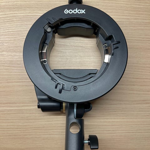 Myydään sovitin, jolla saa kiinnitettyä Elinchrom valonmuokkaimet Godox AD400 salamaan.
