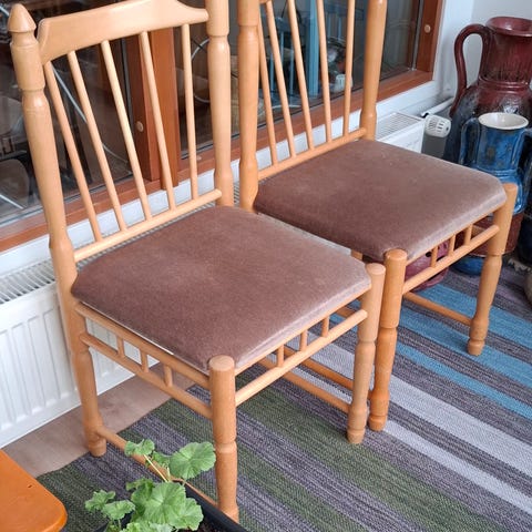 Annetaan 5 kpl ruokapöydän tuoleja. Tuolit hyväkuntoisia ja ehjiä. Halutessaan voi ottaa myös huonopintaisen mutta jämäkän ruokapöydän. Puh. 050 5051058