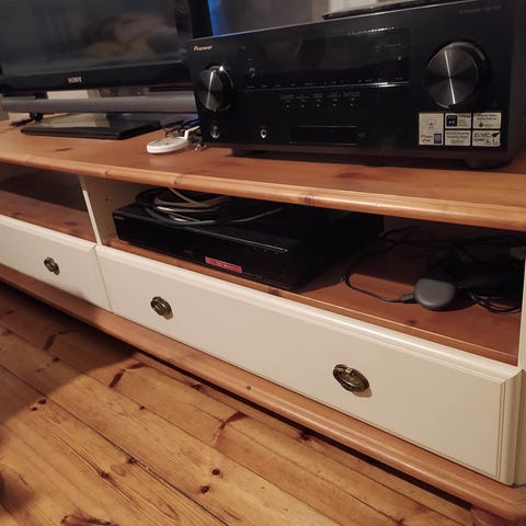 Ehjä ja jämerä tv-taso. Hyvät kaapit ja vetolaatikot. Tavaraa mahtuu kivasti.