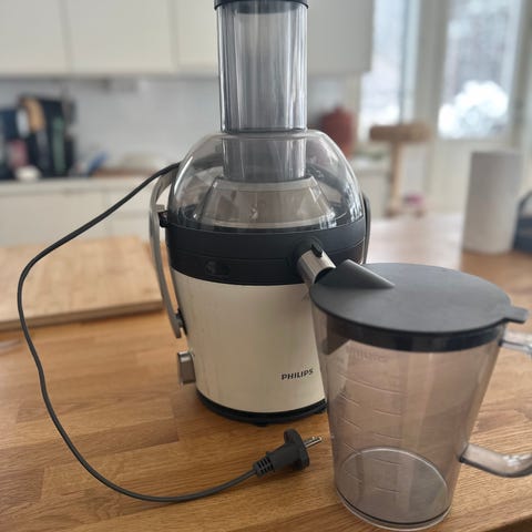 Myydään hyväkuntoinen Philips-mehustin ja siihen kuuluva juomakannu (n. 1 L). Toimii moitteettomasti. Vähän käytetty - ollut nyt useamman vuoden varastossa ja sitä ennen satunnaisessa käytössä n. vuoden verran. Ikä huomioitu hinnassa.
