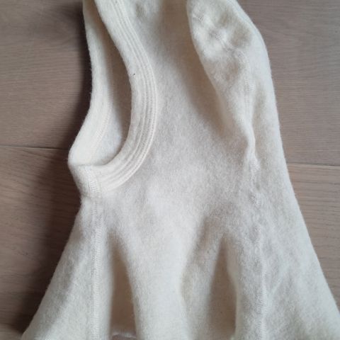 Ruskovilla kypärälakki 2-4v. En ole pessyt, tuuletettu vain. Reikiä en löytänyt, mutta pari tuollaista ohuempaa paikkaa kankaassa, ks kuvat. Pussissa säilytetty.