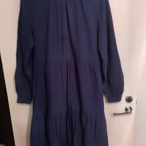 Nanso arkimekko naisille, koko 40. Mekko on valkoinen, jossa on musta kuviollinen pinta. Materiaali on viskoosia. Mallissa on pitkät hihat, kaulus ja napitus yläosassa. Sopii arkipukeutumiseen ja kerrospukeutumiseen.