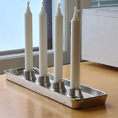 Koristeellinen kynttilälyhty- ja tarjotinsarja, jossa useita erikokoisia metallisia kynttilälyhtyjä ja -jalkoja sekä pyöreä tarjotin. Kaikissa osissa on runsaasti kirkkaita, timanttimaisia kristallikoristeita metallikehyksessä. Sopii esimerkiksi pöytäkynttilöille ja tuikkukynttilöille sisustuselementiksi. Väri hopea/metalli ja kirkas kristalli.