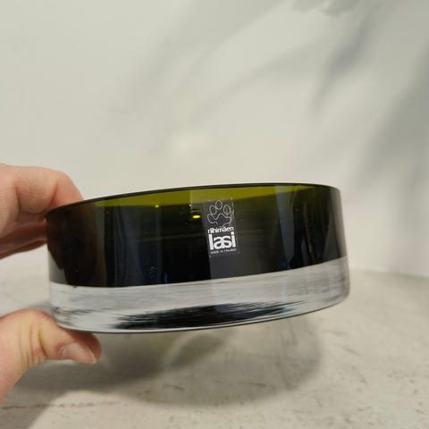 Riihimäen lasin tuhkakupit 2 kpl. Vinoneliö kuvio. Erinomainen kunto. Yhteishinta.