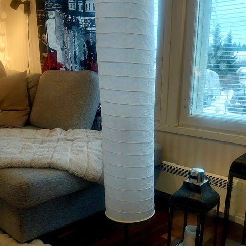 Myydään lattiavalaisin. Pohja vaatinut teippausta, sillä muovipinnoite alkanut ajankuluessa hapertua, ks yst kuva. Muilta osin yleisilme siisti.