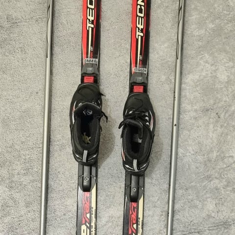 Lasten suksipaketti:sukset 130cm, sauvat 105cm, monot 30,5