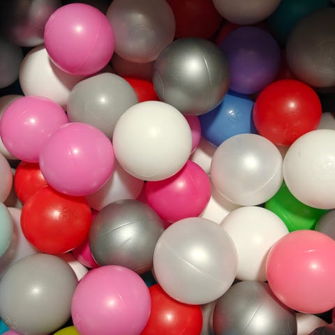 Myyntiin jo vähemmälle käytölle jäänyt harmaa pallomeri, merkki JLY. Pallot väriltään turkoosi, harmaa ja valkoinen. Nouto Ruskeasannalta.