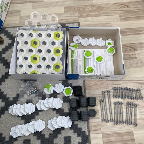 Perussetti sisältää erilaisia kuularadan osia, kuten kuusikulmaisia laattoja, ratoja, tukirakenteita, kuulia ja lisäosia, joilla voi rakentaa useita erilaisia ratoja. Pakkauksessa on ohjekirja ja ratamallit, joiden avulla voi koota valmiita ratoja tai suunnitella omia. Soveltuu painovoimaan perustuvien kuularatojen rakentamiseen ja kokeilemiseen ikäsuosituksesta 8 vuotta alkaen.