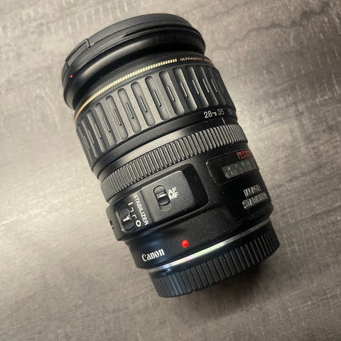 Canon EF 28-135mm f/3.5-5.6 IS USM zoom-objektiivi. Polttovälialue 28–135 mm, valovoima f/3.5–5.6. Objektiivissa on kuvanvakain (Image Stabilizer) sekä USM-tarkennusmoottori automaattitarkennusta ja käsintarkennusta varten.