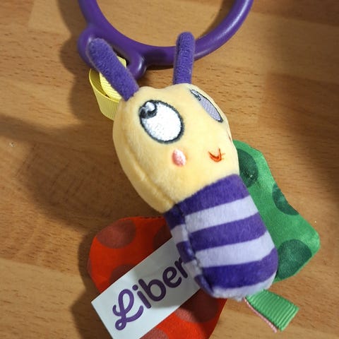 Annetaan vauvan leikkimatto. Yksi lelu puuttuu toisesta kaaresta mutta siihen saa ripustettua helposti jonkin muun lelun. Matto on tullut meille käytettynä ja ollut meillä kahdella lapsella aktiivisessa käytössä (eli käytön jälkeä löytyy).