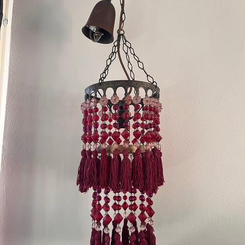 Indiska riippuvalaisin, 2kpl. Punainen, uurteinen lasivarjostin ja metallinen yläosa. Käyttämättömiä. Mutta viimeisessä kuvassa näkyy halkeama lasissa toisessa lampussa.