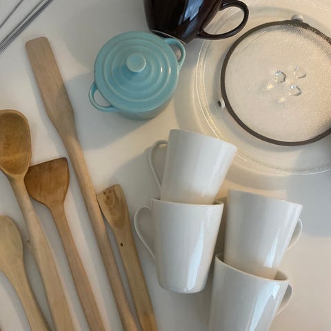 Täysin uudet puiset keittiövälineet; kauha, lasta, haarukkalasta. Korkeus n 19 cm.