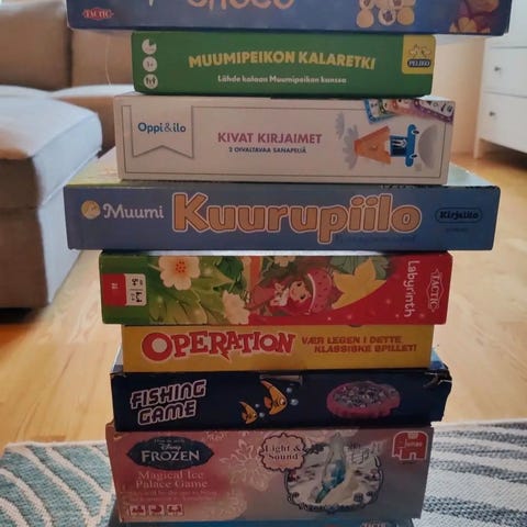 Myydään lasten pelit Laiva on lastattu & muistipeli "Hyviä aikoja" (retrohenkisiä kuvia). Muuten siistikuntoiset, mutta muistipelin laatikon reunaa on siististi teipattu.