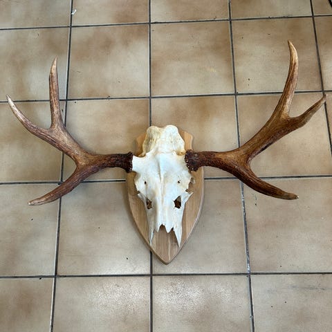 Hirvensarvet kallolla, kiinnitettynä puiseen taustalevyyn. Soveltuu sisustuselementiksi esimerkiksi seinälle metsästys- tai luontoaiheiseen tilaan. Ovenkahvoiksi, käsityö tarpeiksi, mitä vaan keksii.