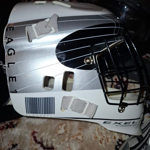 Laadukas Wall maalivahdin maski salibandyyn, aikuisten M koko. Väri valkoinen + valkoinen ristikko. Maskissa useita ilmanvaihtoaukkoja ja säädettävät remmit istuvuuden säätöön. Sisäpuolella pehmusteet ja leukasuoja lisäämässä käyttömukavuutta ja suojaa. Yleiskunto hyvä, mutta käytön jälkiä on. Kypärään saatavilla varaosia (mm. Remmit, ruuvit, pehmusteet) joten kypärä on pitkäikäinen. Yksi leukapehmuste irronnut mutta saa liimalla kiinni. Emme ole korjanneet jos ostaja haluaa vaihtaa pehmustesarjan.