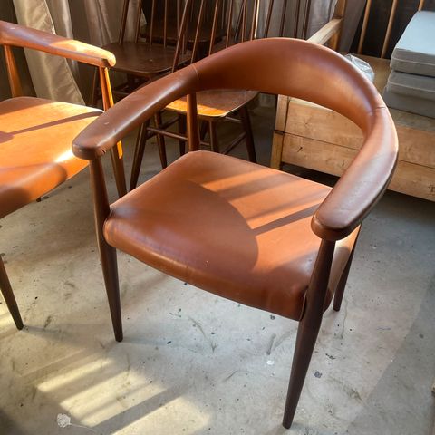 Neljä mustaa Askon Pirjo-tuolia, jotka on suunnitellut Aulis Leinonen 1960-luvulla. Maalipinta on kärsinyt vuosien varrella.