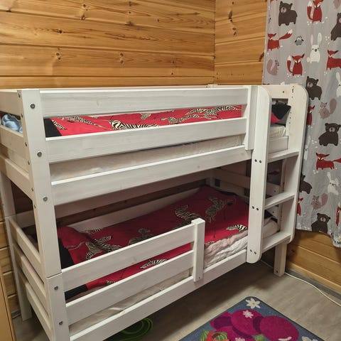 Myydään isomman kerrossängyn tieltä Veken kalusteesta ostettu Viviano kerrossänky ja sängynaluslaatikko. Sänkyjä voi pitää myös kahtena erillisena sänkynä.