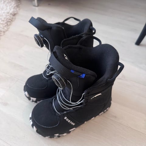 Burton Grom Boa lasten lumilautakengät. Kengissä on Boa-kiristysjärjestelmä, joka mahdollistaa helpon ja tasaisen kiristyksen pyöritettävällä säätimellä. Koko on EUR 33 (US 2K, UK 1, JPN 20.5).