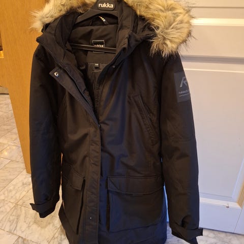 Rukka naisten untuvatakki, koko XL, musta. Takissa on tikattu, toppamainen rakenne ja kiinteä huppu, jossa tekoturkisreunus. Edessä vetoketju ja vetoketjulliset taskut, hihoissa lämmittävät trikooresorit. Ihana ja lämmin takki! Nouda Atalasta tai töiden jälkeen Pyynikiltä.