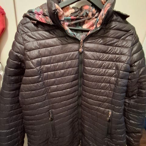 Saki naisten takki, koko XL. Väriltään beige. Takissa on kauluskäänteet ja nappikiinnitys edessä. Vuori on kuviollinen. Sopii arki- ja siistimpään pukeutumiseen viileämpiin keleihin.