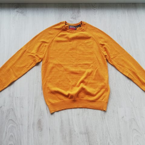 Superdry collegepaita koko S. Tumman sininen, logo toisessa hihassa, numero 3 toisessa hihassa. Lähes käyttämätön. Logo ei ole todellisuudessa ihan noin kirkkaan oranssi kuin kuvassa.