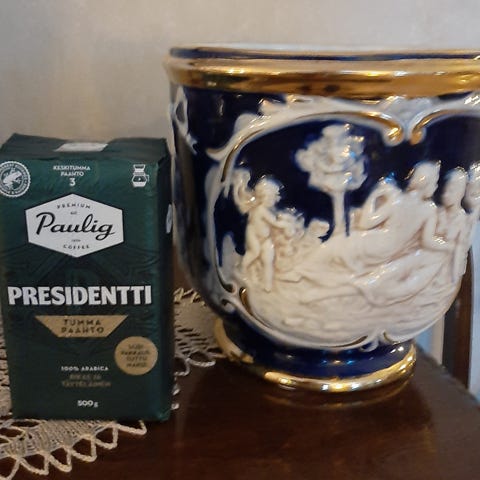 Vanha Ranskasta ostettu ruukku. Pohjaan tehty reikä, muuten ehjä, mutta toki erittäin patinoitunut yksilö. Suuaukko 16cm. Korkeus 24cm. Lähetys mahdollista järjestää.