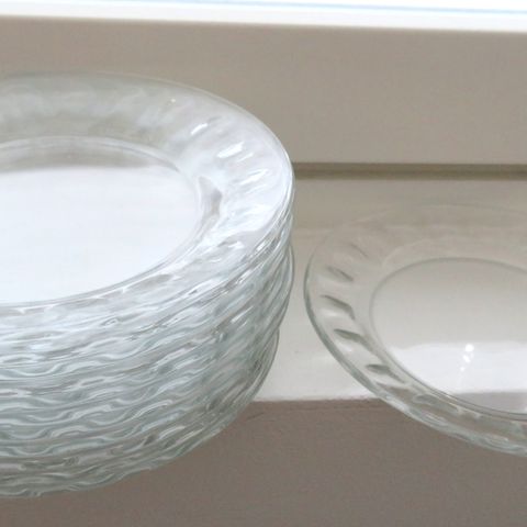 6 kpl maitolasiposliini lautaset. Halk. 19,5 cm.
