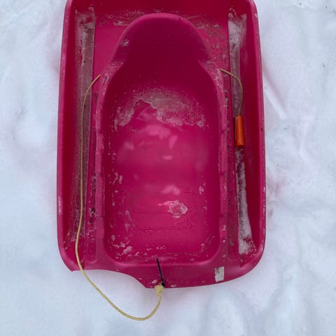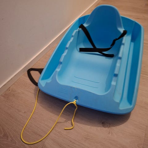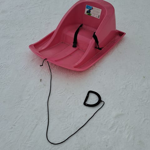 Annetaan pienelle lapselle sopiva pulkka. Puuttuu vetonaru. Käytössä yhdellä lapsella.
