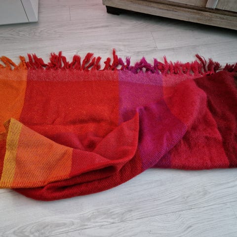 Kaunis punainen ruutukuosi ja hapsureunat.