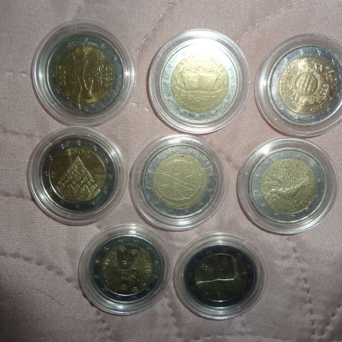 12 kpl juhlarahoja puulaatikossa. Kolikot suojarasioissa.
