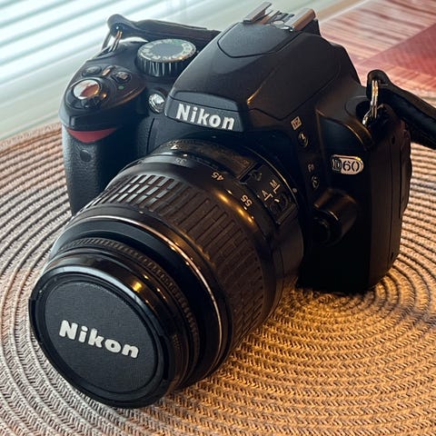 Myydään Nikon D60 järjestelmäkamera ja nikkor 18-55 mm objektiivi