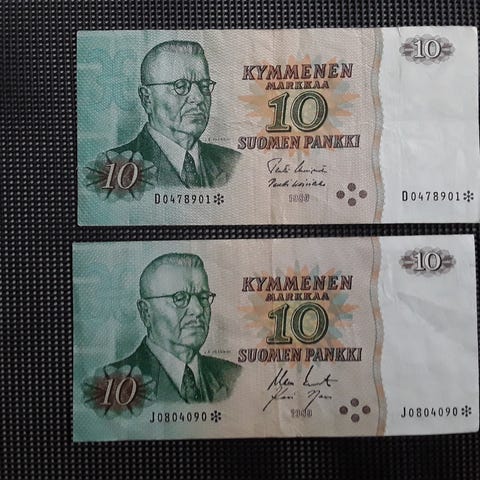Pienet keskitaitokset, muutoin hyväkuntoinen seteli