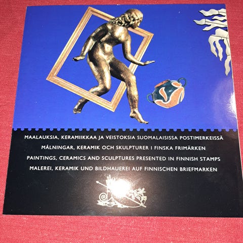 Maalauksia, keramiikkaa ja veistoksia postimerkkikokoelma. Merkit vuosilta 1987, 1991, 1993 ja 1994. Merkkejä yhteensä 11kpl. Merkit leimaamattomia suojamuovissaan keräilyvihkossa. Merkkien ilmestymispäivät löytyy tekstiosasta kuten infoa taiteilijoista.