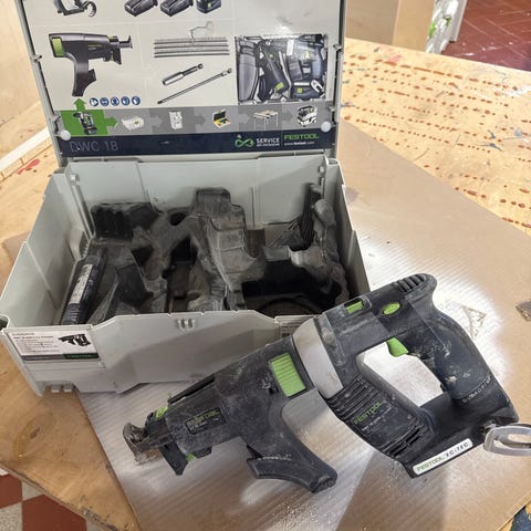 Festool ISC 240 akkusaha. Li-Ion -akkutekniikkaa käyttävä saha eristeiden ja levyjen leikkaamiseen. Mukana Festool Systainer -kuljetuslaukku ja muotoillut sisäosat työkalun ja tarvikkeiden säilytykseen. Soveltuu rakennus- ja remonttikohteiden sahaustöihin.