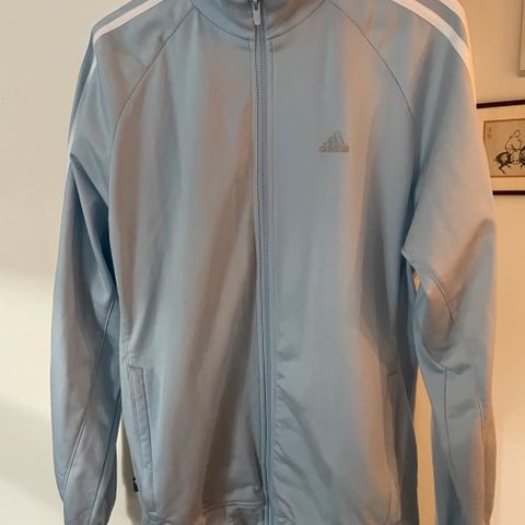 Olkapäillä kulkee Adidaksen tunnusomaiset raidat.