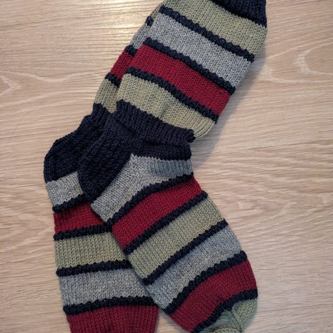 Räsymatto tyyliset miesten eripari villasukat, uniikit. Terän pituus 28 cm, ja varren pituus 15 cm. Villaa 75 %, ja keinokuitua 25%. Voin postittaa kirjeenä 5,50€
