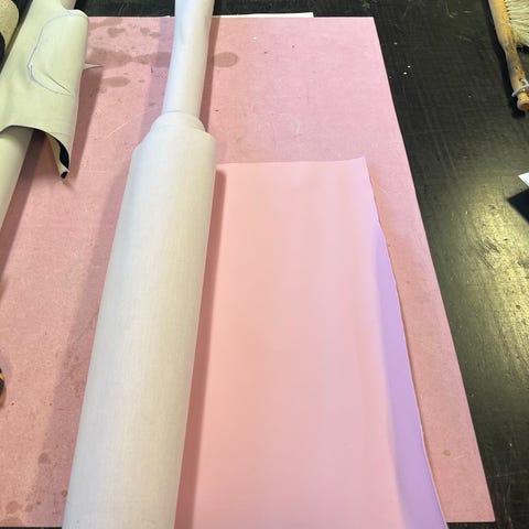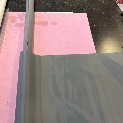 Kangasrulla, jonka leveys on noin 145cm. Kankaan pinta on violetinsävyinen ja hienojakoinen kuviollinen, taustapuoli vaalea. Materiaali vaikuttaa joustamattomalta ja hieman jämäkältä, sopii esimerkiksi askarteluun, verhoiluun tai muihin ompelu- ja sisustusprojekteihin. Myydään yhtenä rullana kuvien mukaisessa kunnossa.