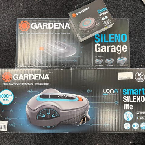 Mukana on myös Gardena Sileno Garage -suoja robottiruohonleikkurille. Garage-suoja on yhteensopiva Sileno minimo-, Sileno city- ja Sileno life -malleille ja se tarjoaa robottiruohonleikkurille katoksen latausaseman päälle. Tämä kokonaisuus soveltuu pihan nurmikon hoitoon automaattisesti robottiruohonleikkurin avulla.