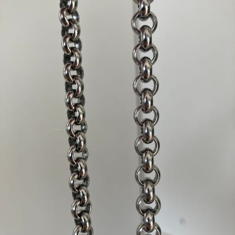 60cm pitkä, vankka kaulakoru teräksestä. Moitteeton.