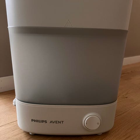 Philips Avent höyrysterilointilaite vauvan tarvikkeiden, kuten tuttipullojen ja tuttien, hygieniseen puhdistamiseen. Laitteessa on irrotettava vesiallas, rei’itetty sisäkori ja kansi. Sähkötoiminen laite, jossa on etupaneelissa säätönuppi. Soveltuu kodin käyttöön vauvan ruokintavälineiden ja pienten muoviosien höyrysterilointiin.